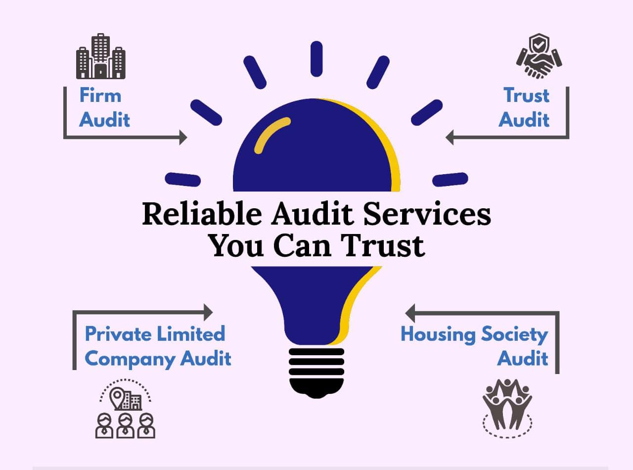 We provide reliable audits including Firm, Trust, Private Limited Company, and Housing Society audits to ensure accuracy and compliance.
